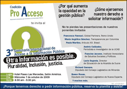 The Pro Acceso Coalition and the Instituto Prensa y Sociedad (YPIS) will launch its third annual “Access to Public Information Month.” The month-long event begins on Right to Know Day and includes a major international seminar on access to information, set to take place in Caracas on October 7th.